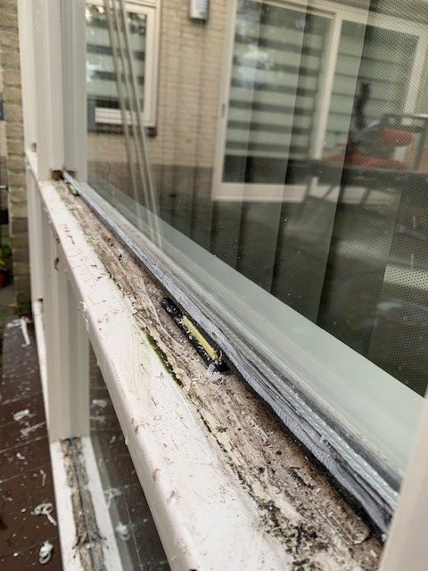 Waarom geventileerde neuslatten? Wanneer de gevelkozijnen zijn voorzien van traditionele (rechthoekige) glaslatten zullen kitnaden na verloop van tijd slechter worden. Dit kan je zien aan openstaande naden of afbladderen van verf. Hierdoor kan regenwater door capillaire werking tot in de sponning doordringen. Dit betekend dat het vocht kan hier niet weg kan en er zal door ophoping (schimmels) houtrot ontstaan. Dit kan mogelijk al geruime tijd spelen omdat dit zich niet direct aan het oppervlak laat zien.