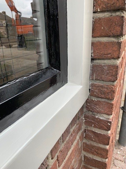 - Tot slot schuren we alles op zodat het weer een strak kozijn lijkt en verven we het weer naar zijn voormalige staat.